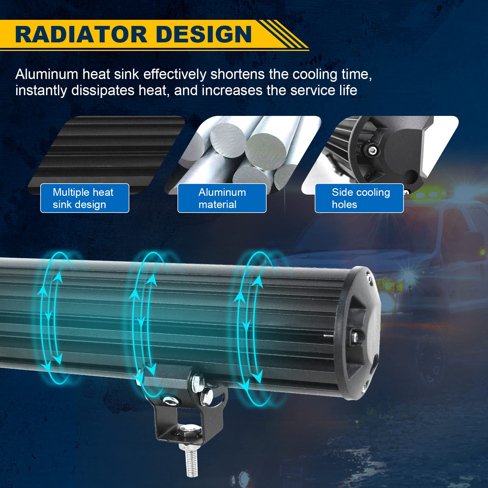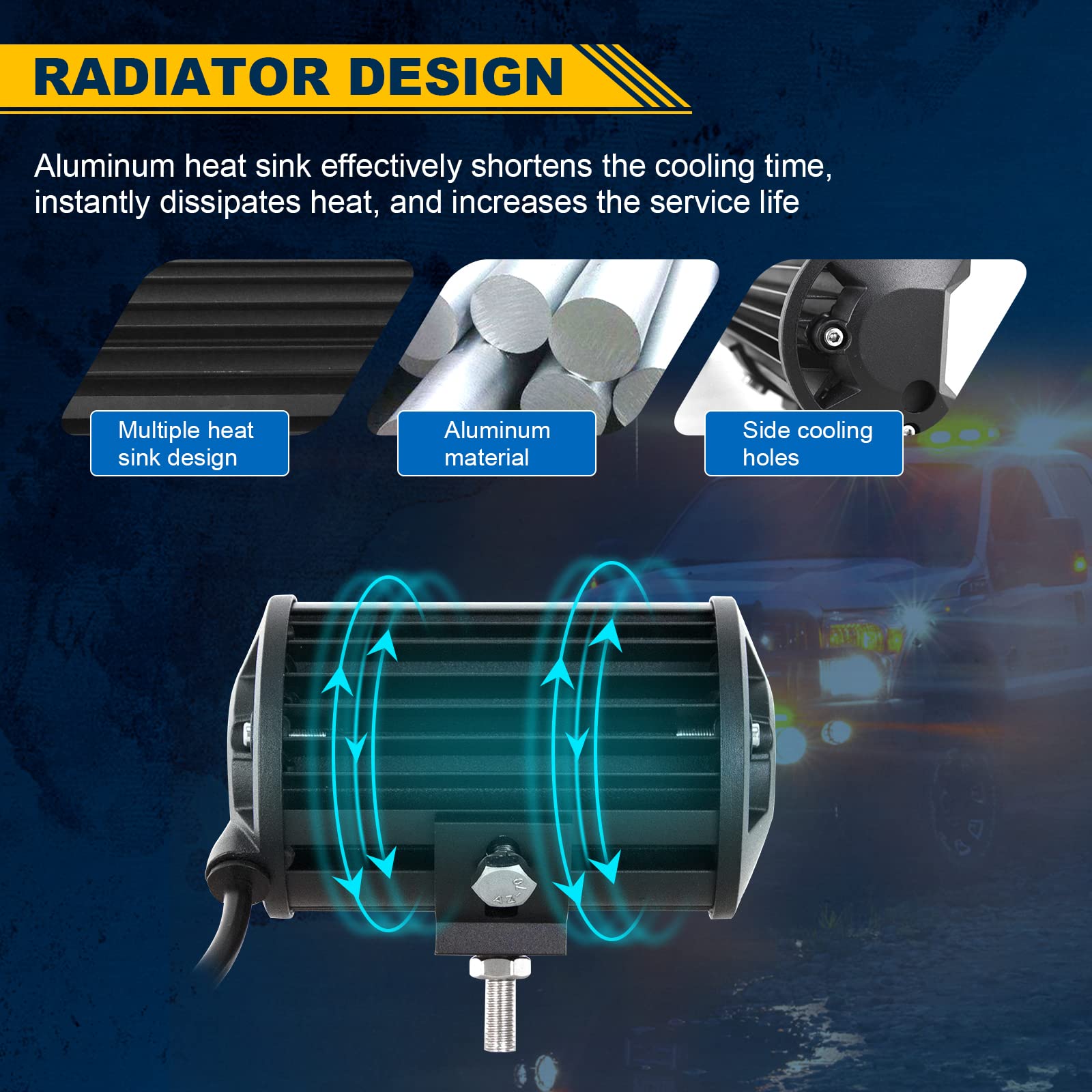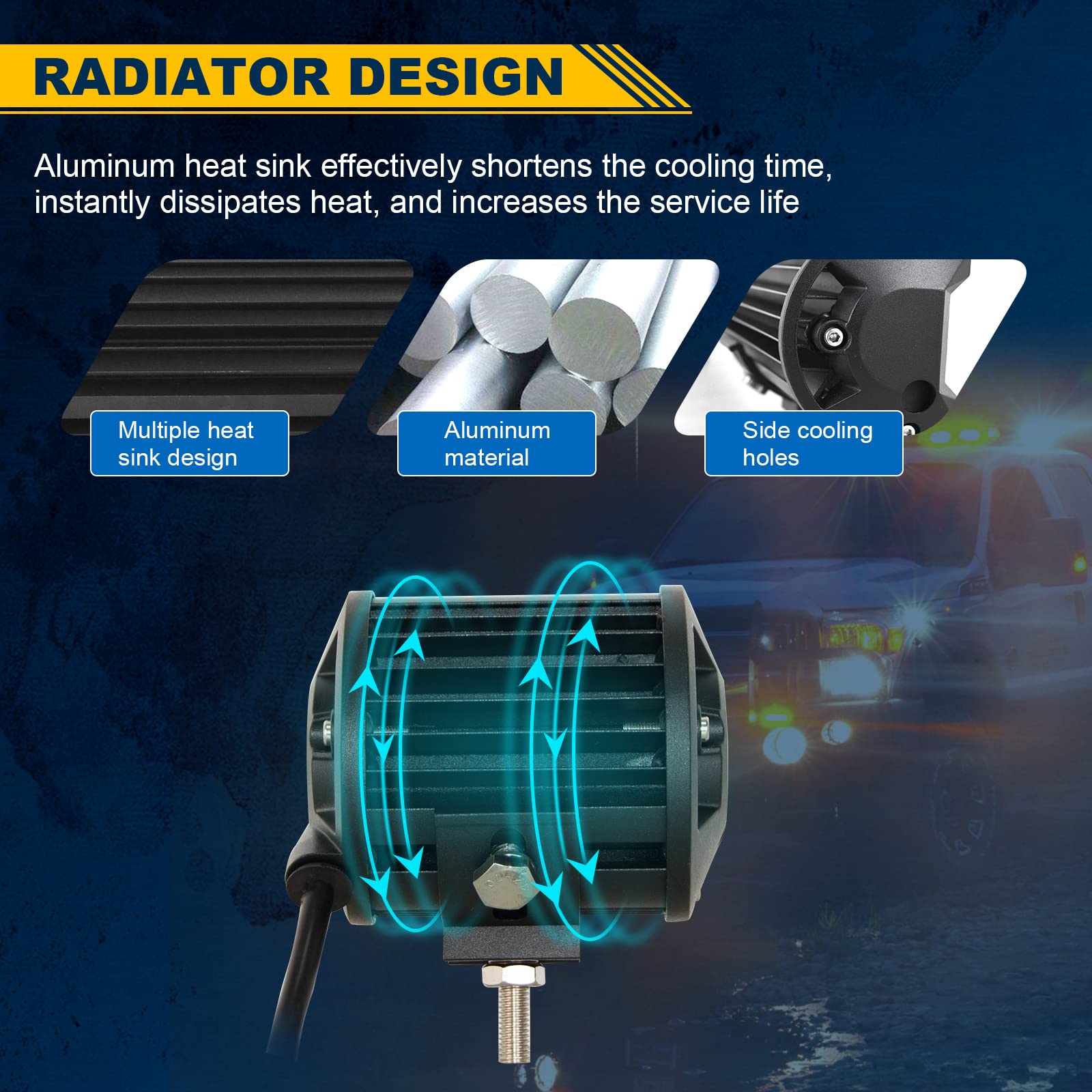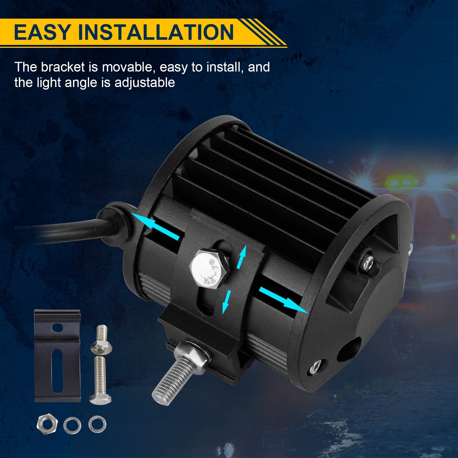 - Robustes Design: Schwarz lackiertes, hochwertiges Aluminiumgehäuse, verstellbare Halterung aus Edelstahl und bruchsicheres Scheinwerferglas mit Wasserschutzgrad IP67, robust genug, um jeder harten Witterung standzuhalten.