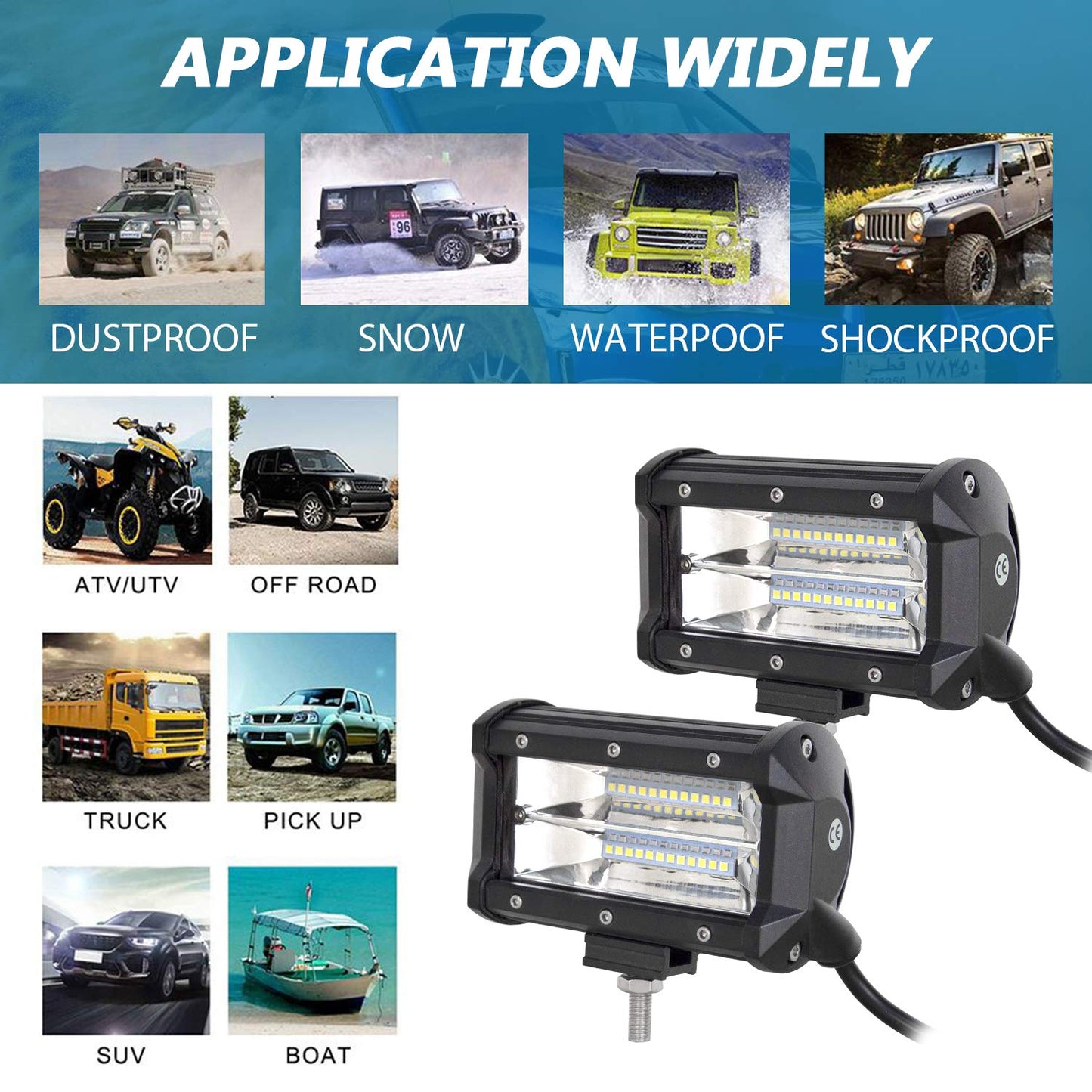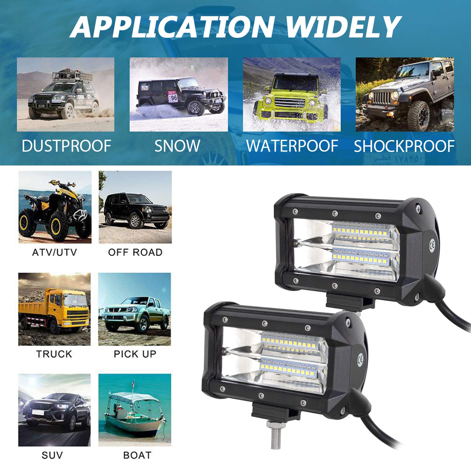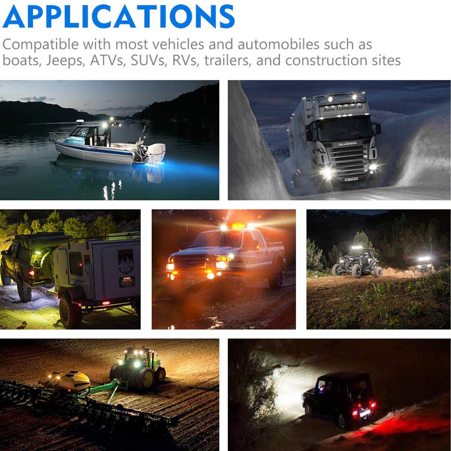 - Kann auf verschiedenen Arten von Fahrzeugen angebracht werden: Lkws, Geländewagen, Jeeps, Minenfahrzeuge, Boote sowie Fahrzeuge für Bauernhöfe und schwere Ausrüstung usw. (Bitte länderspezifische Rechtsvorschriften beachten).