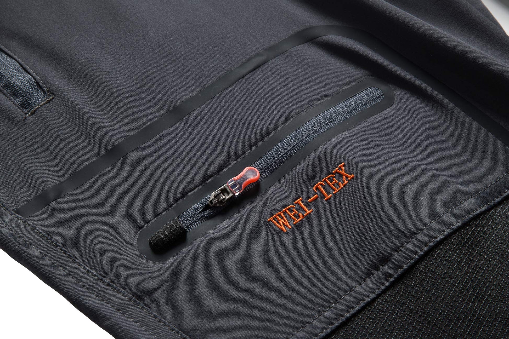 - Softshellhosen bestehen aus 92% Polyester und 8% Elasthan, sind wasserdicht, winddicht, warm und abriebfest.
