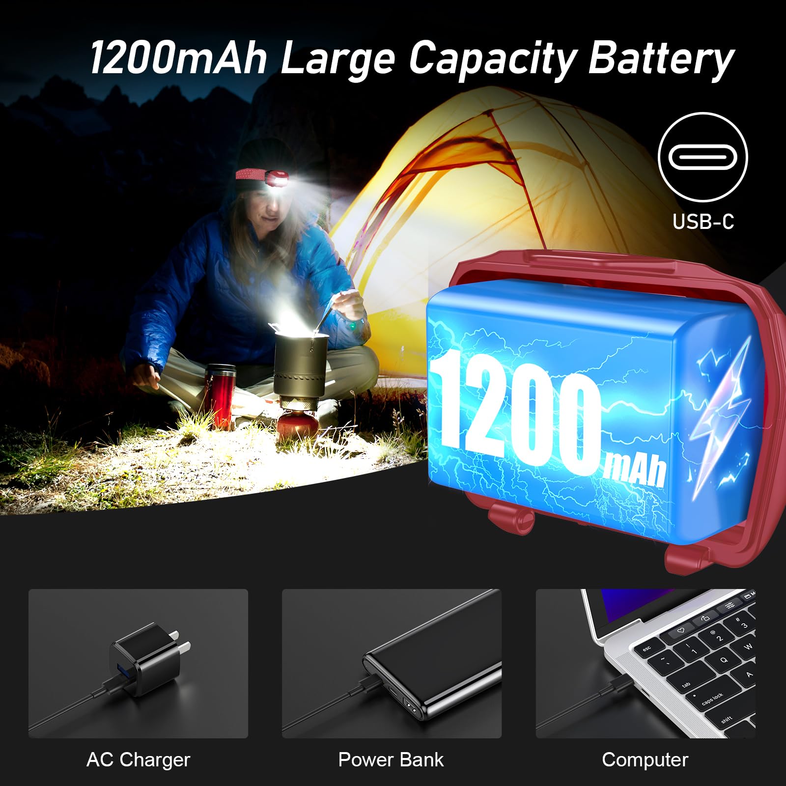 - USB C Wiederaufladbar: Diese LED Kopflampe verfügt über einen eingebauten 1200mHA Akku, der über USB C aufgeladen werden kann. Damit erhalten Sie eine längere Beleuchtungszeit und ein einfacheres Ladeerlebnis (USB C Kabel im Lieferumfang enthalten).