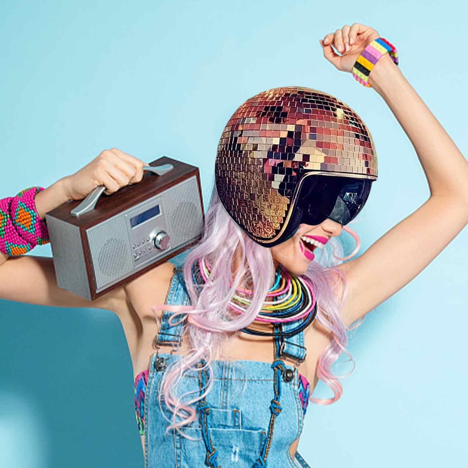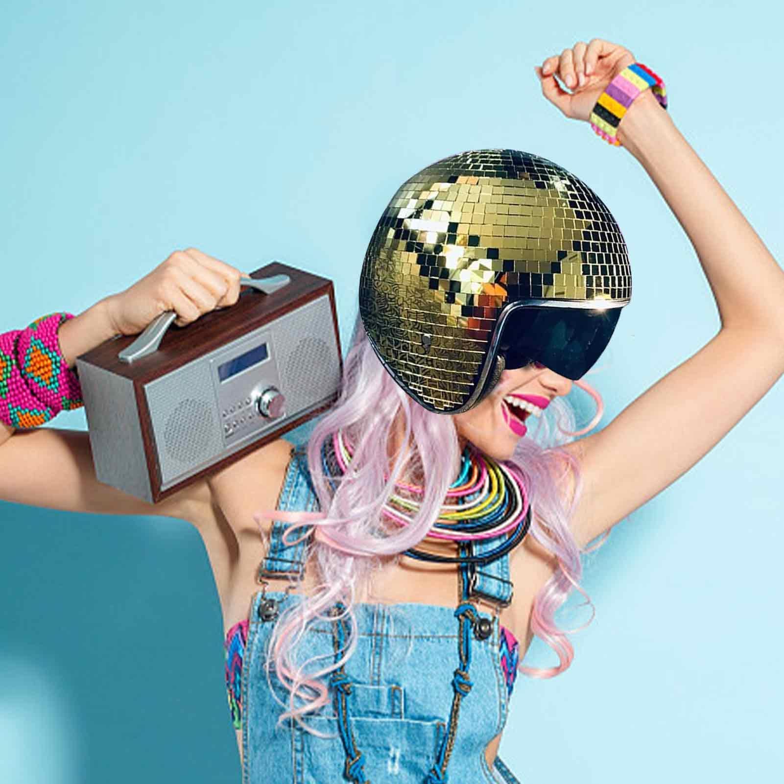 Discokugel Hüte - Diskokugel Helm | Glitzer Spiegel Glas Discokugel Hut Helm | DiscoDekor Helme | Disco Spiegel Glitzerball Helme | Disco Spiegel Hut | Glitzer Spiegel Glas Disco Ball Hut
