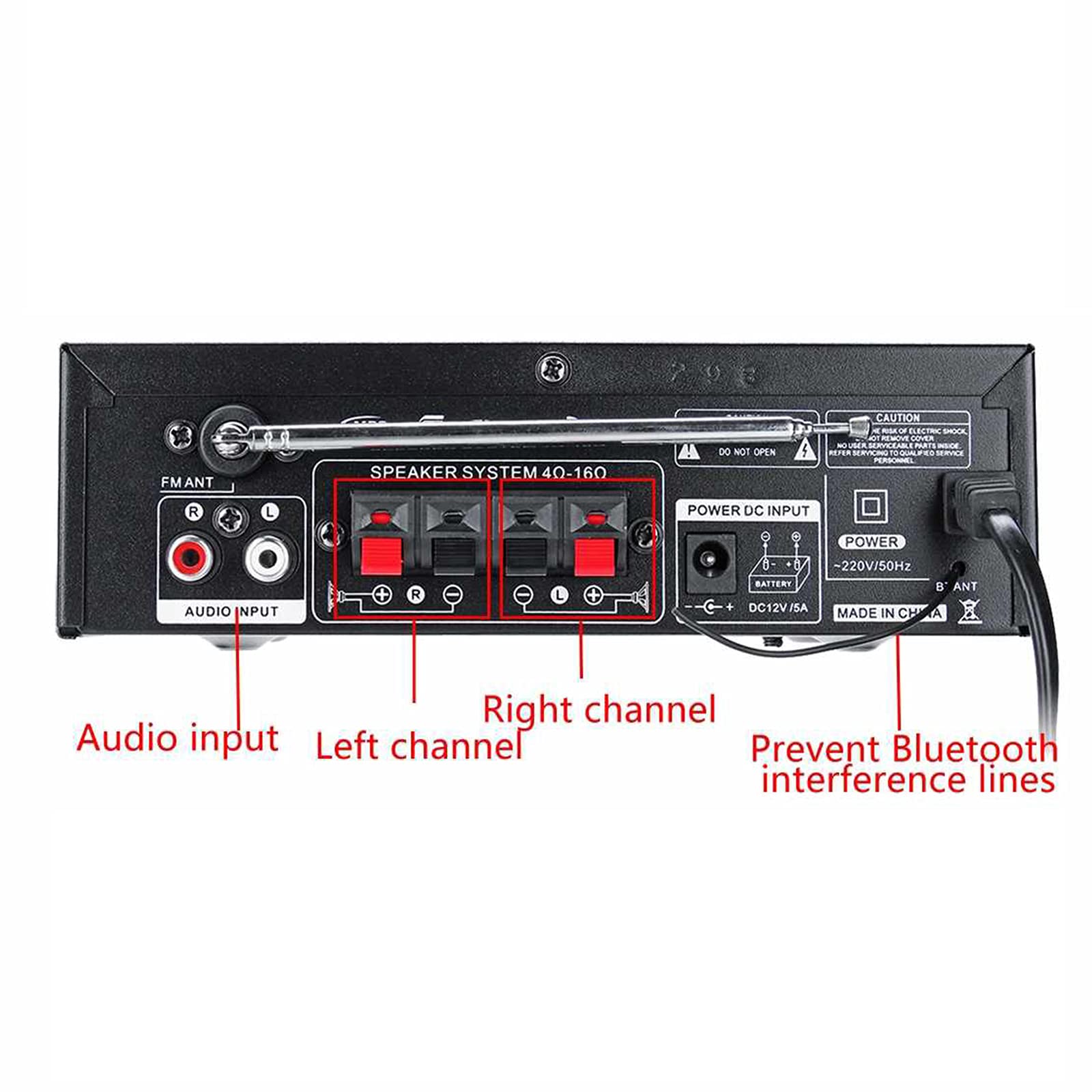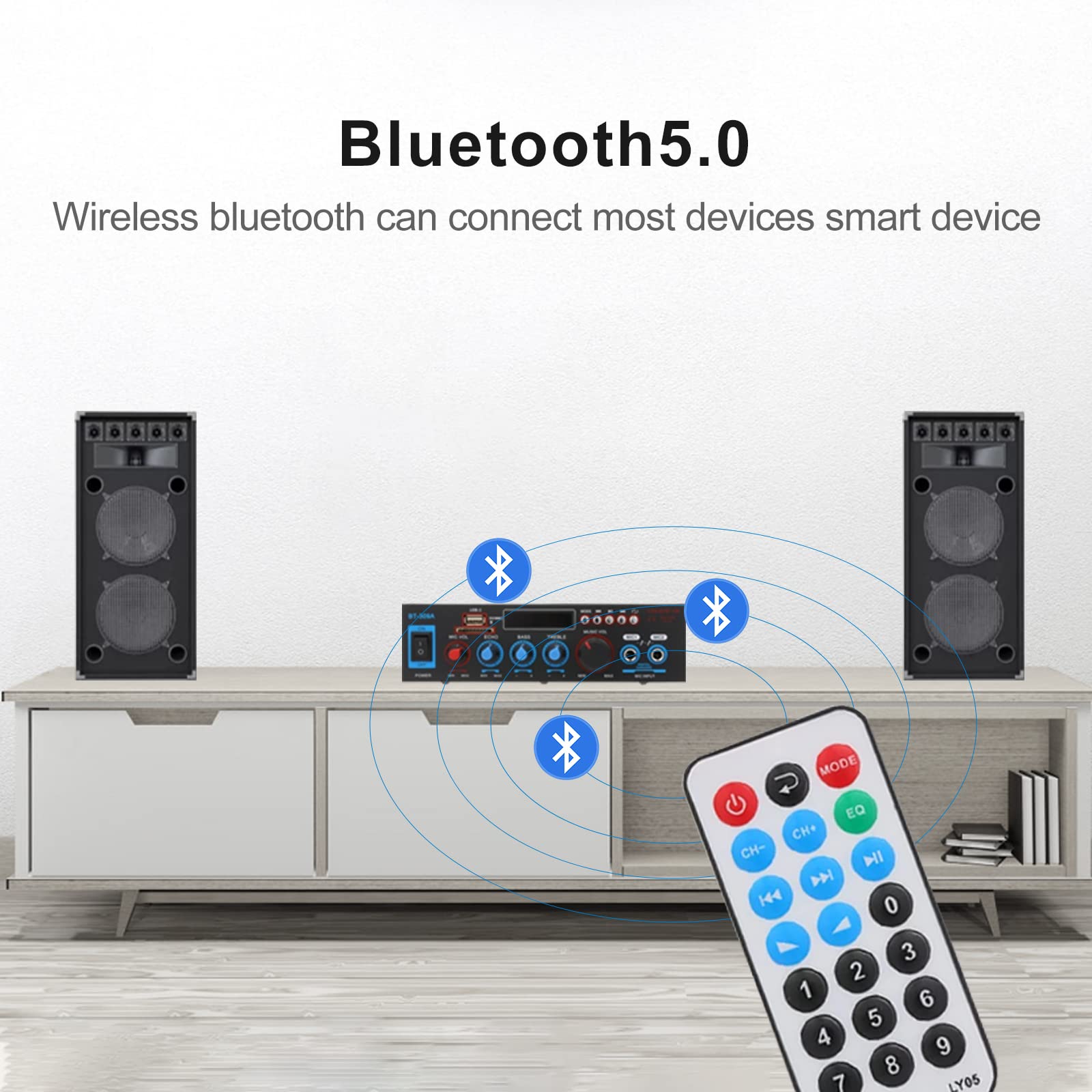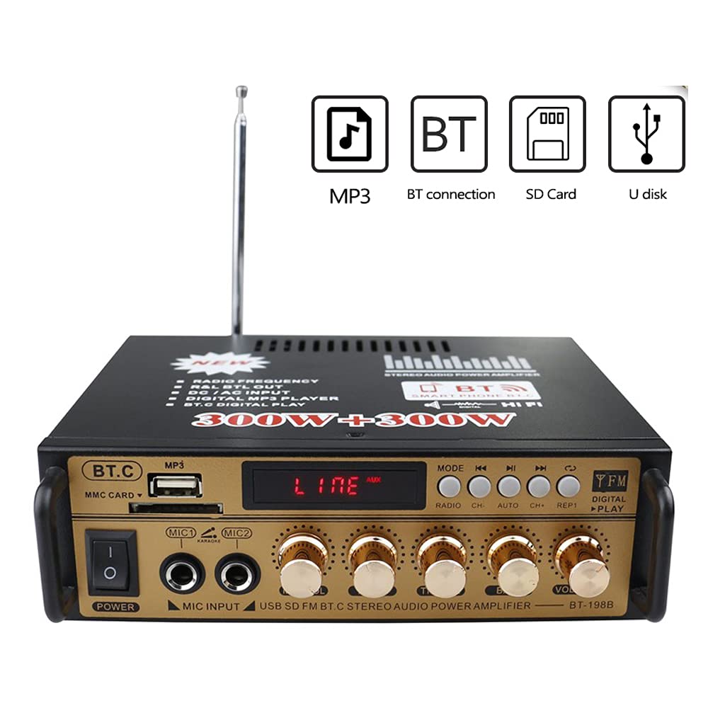 Etlephe Mini Verstärker,HIFI Verstärker,Bluetooth 5.0-Stereo Audio,12 V 220 V 600 W, 2 Kanäle, LCD-Display, High Fidelity, tragbares UKW-Radio, SD/USB-Karteneingang, für Zuhause oder Auto