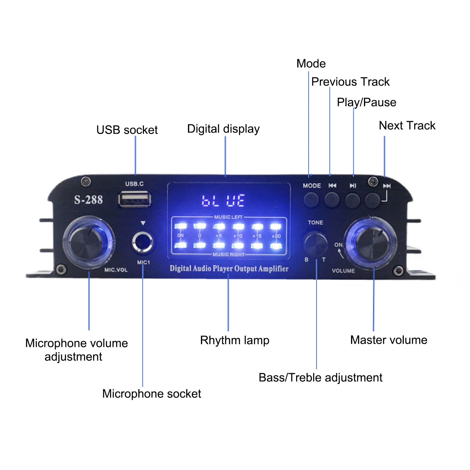 - 【Authentischer HIFI-Audio verstärker】Stereo, mit Master-Lautstärke, Höheneinstellung und Basseinstellung, einstellbar analog zur Steuerung des Verstärkers. Spielen Sie zuverlässig Musik aus der ganzen Welt ab und erhalten Sie authentischen HIFI-Sound.