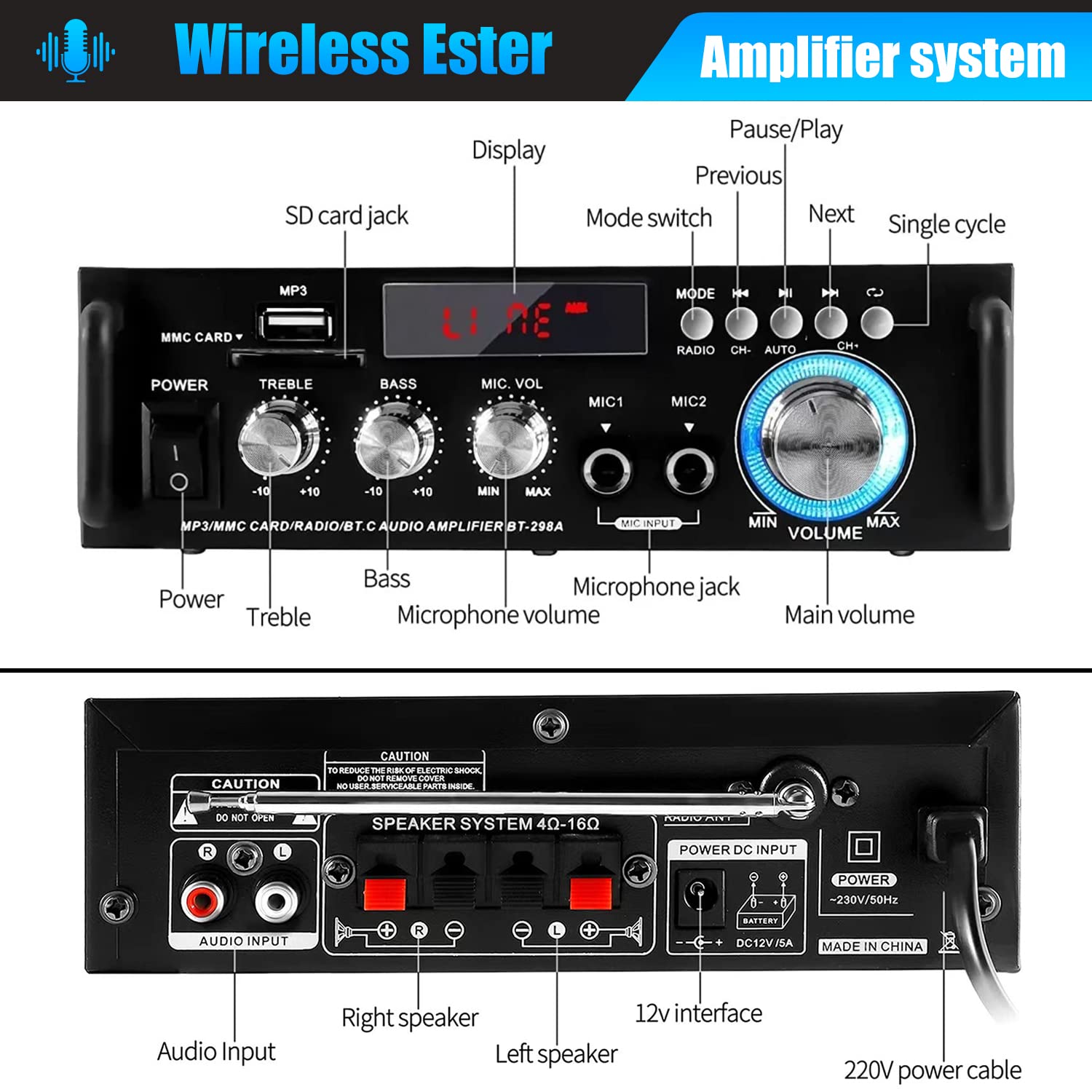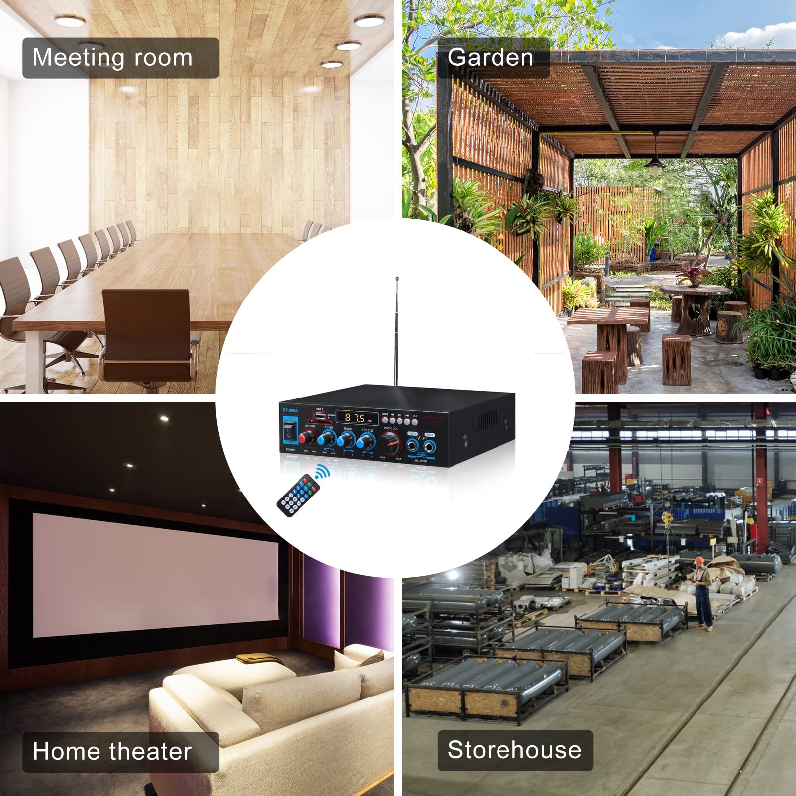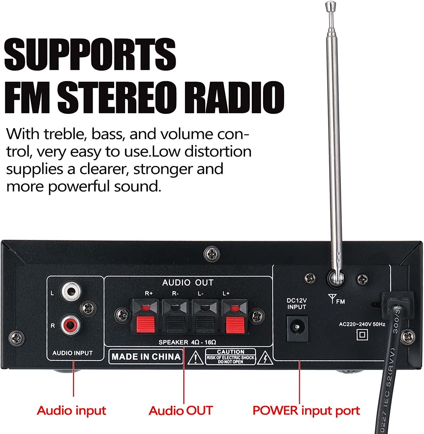 - 【Maximal Gipfel 600 W und Fernbedienung】 Der 2-Kanal-Stereoverstärkerempfänger bietet 300 W x 2 (maximale Musikausgangsleistung 600 W), bietet hervorragende Klangqualität, klaren und detaillierten Klang. Infrarot-Fernbedienung, perfekter Zugang und Kommunikation zwischen Mensch und Verstärker. Seine Bedienung ist einfach und benutzerfreundlich, sodass Sie es vom ersten Moment an lieben werden.
