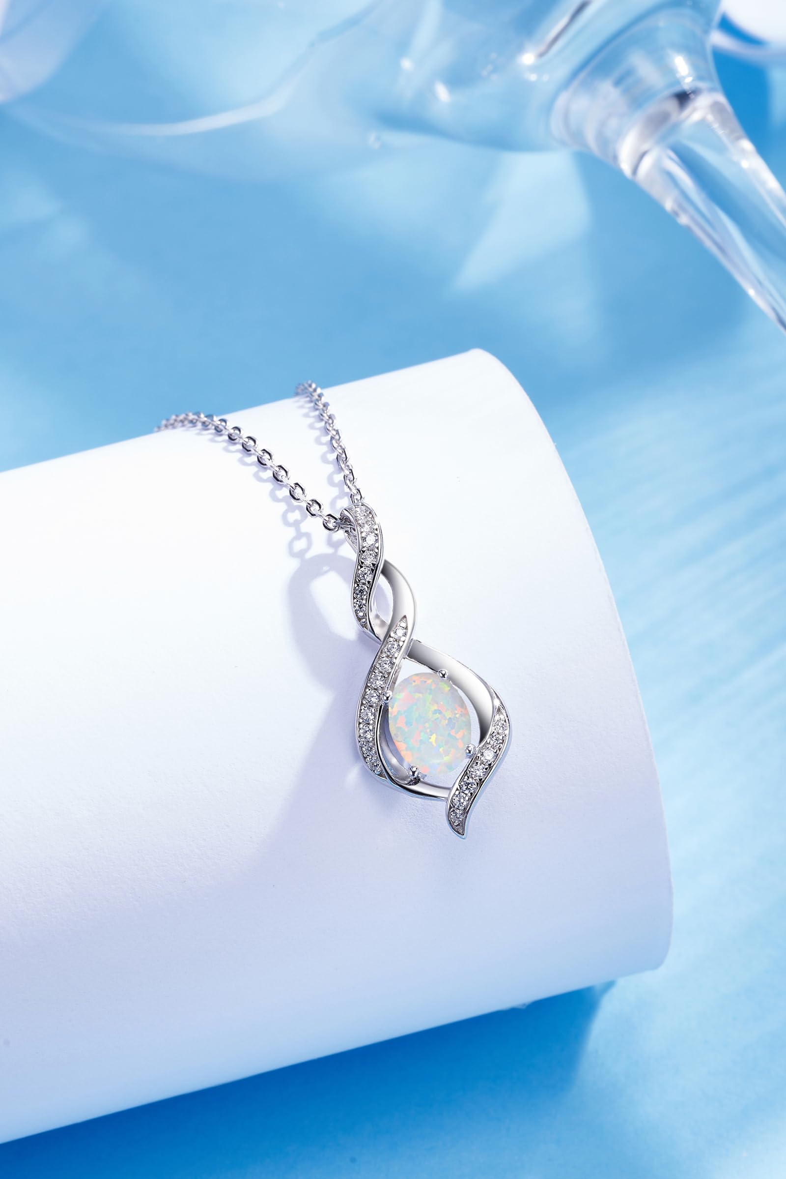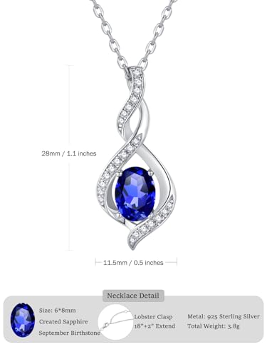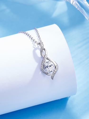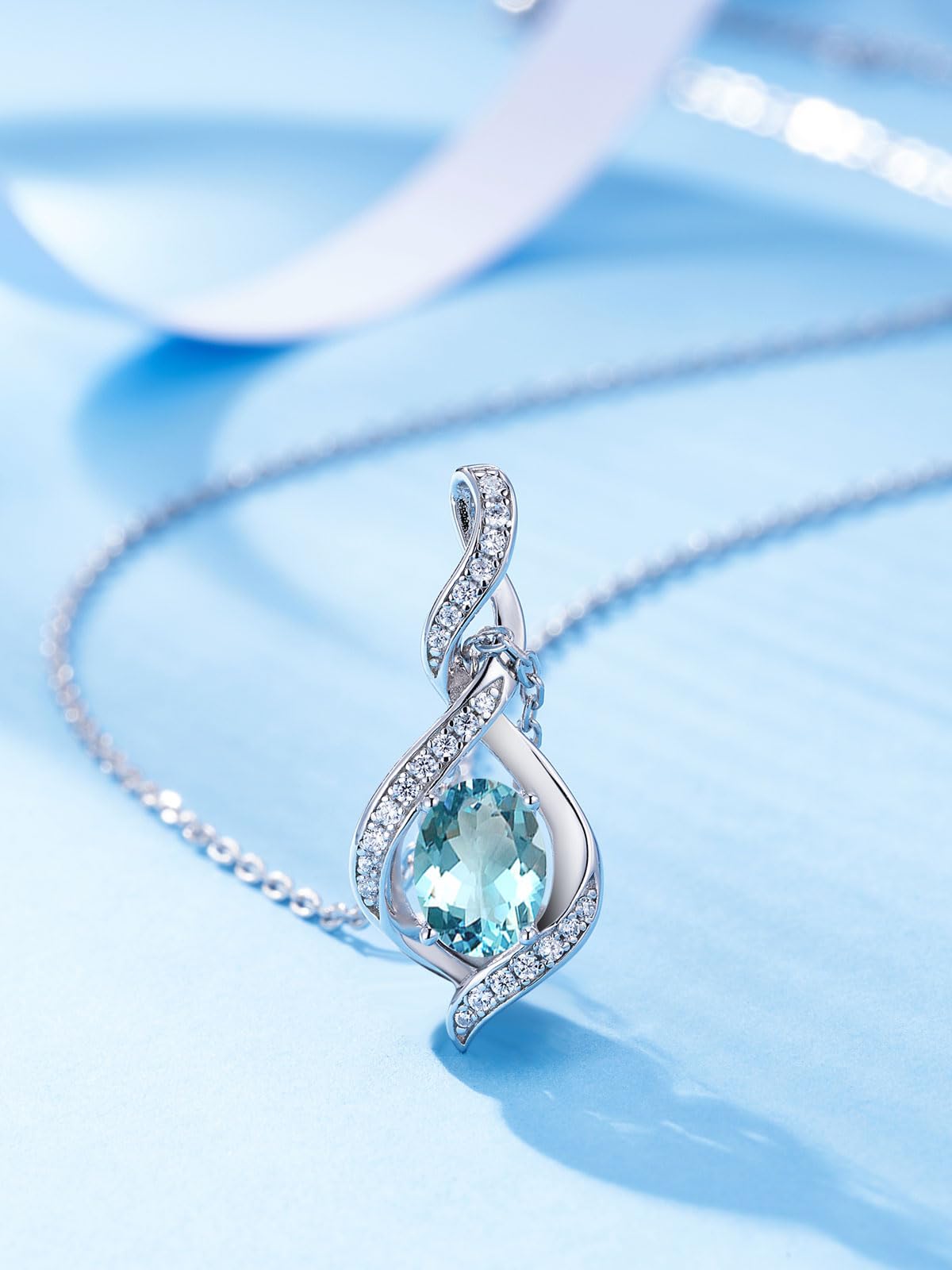 ELB See Leva Jewkis 925 Sterling Silber Edelstein Geburtsstein Halskette Infinity Anhänger Schmuck Geburtstag Schmuck für Frauen Mädchen Mutter, 40+5 CM
