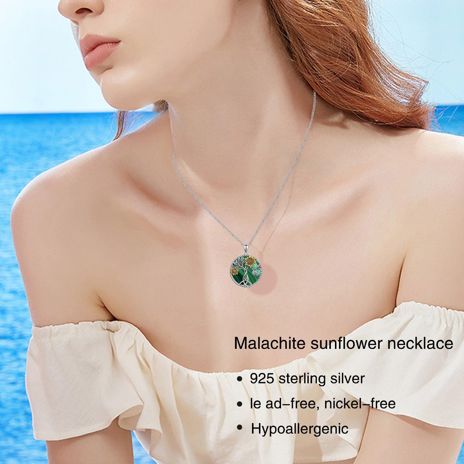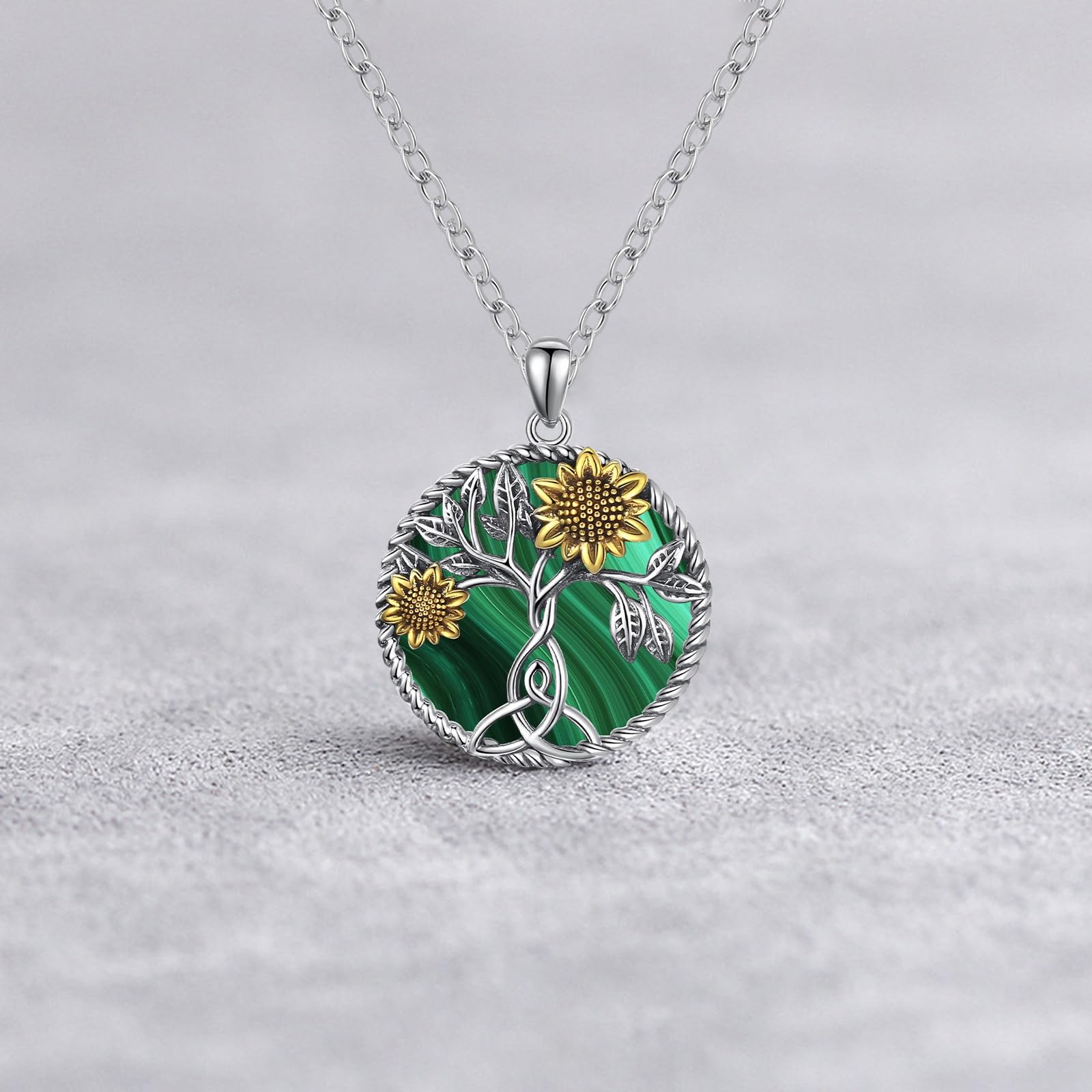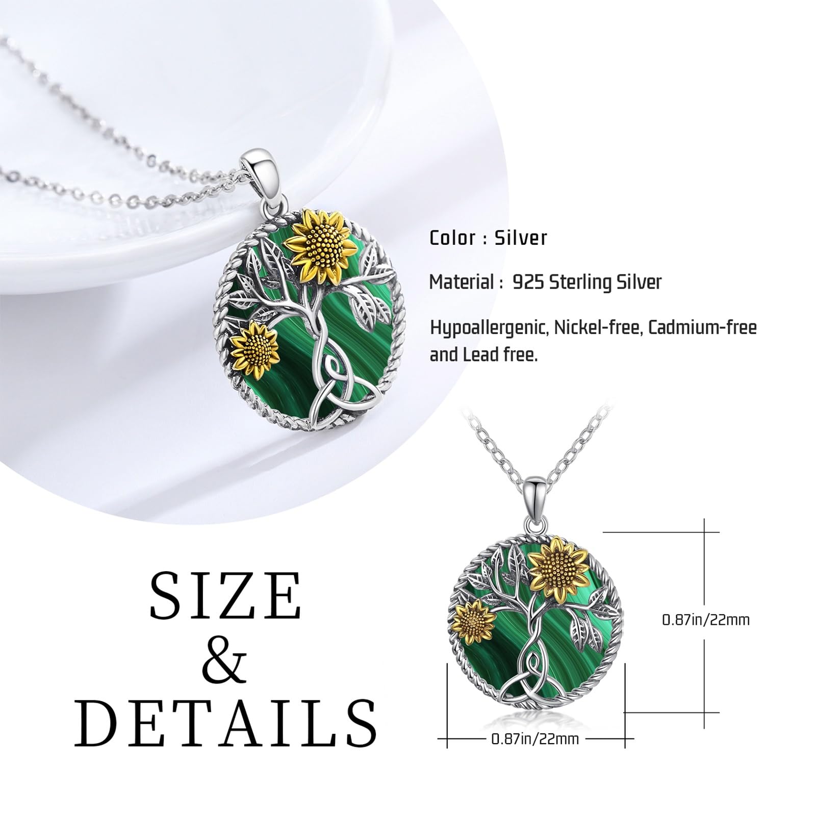 - 【Ausgezeichnetes Design】 Die Sonnenblume hat einen Torso in Form eines keltischen Knotens. Enthält endlose, kraftvolle und unendliche Vitalität, selbstlose und große Liebe. Der mit grünem Malachit eingelegte Baum des Lebens, einzigartig, elegant und charmant.