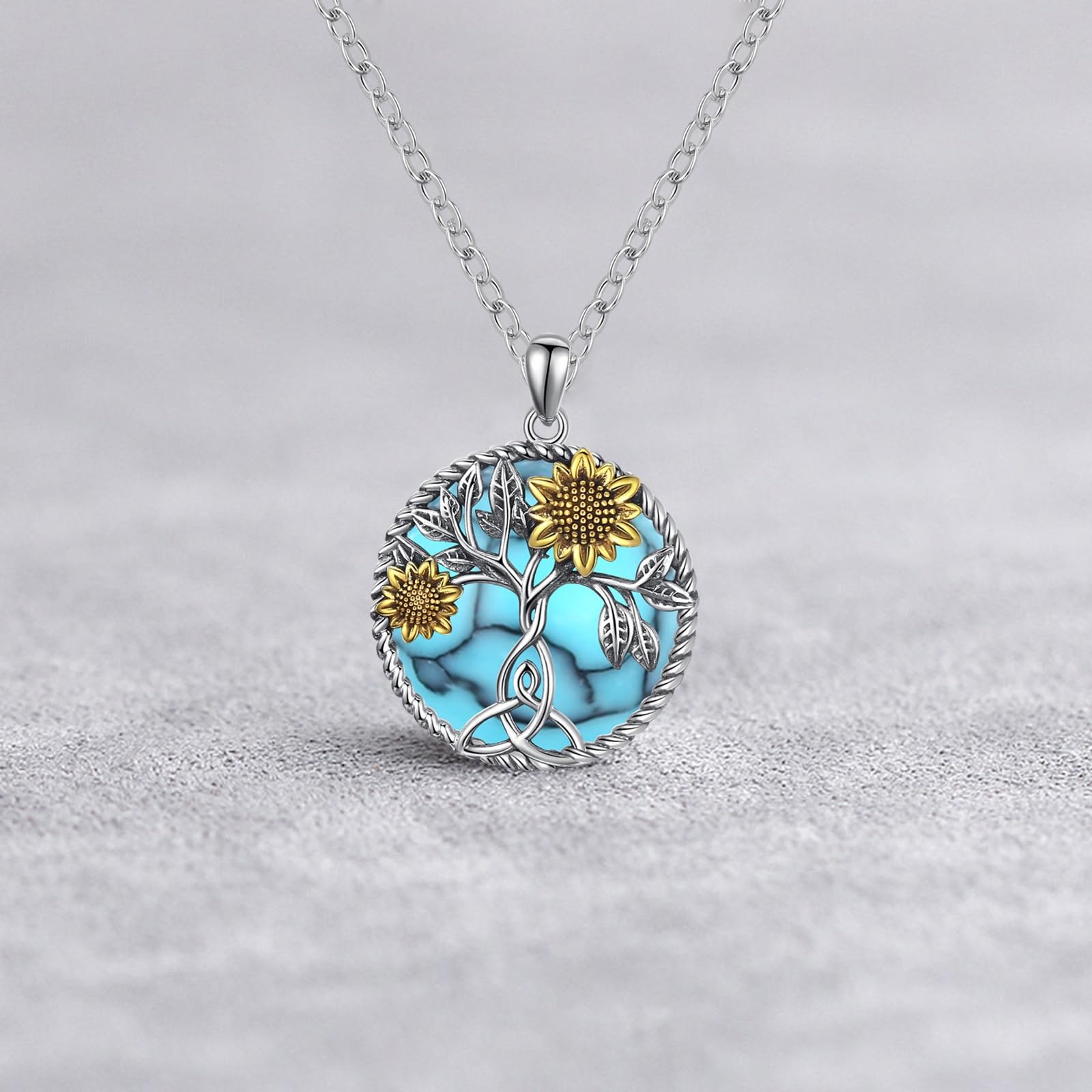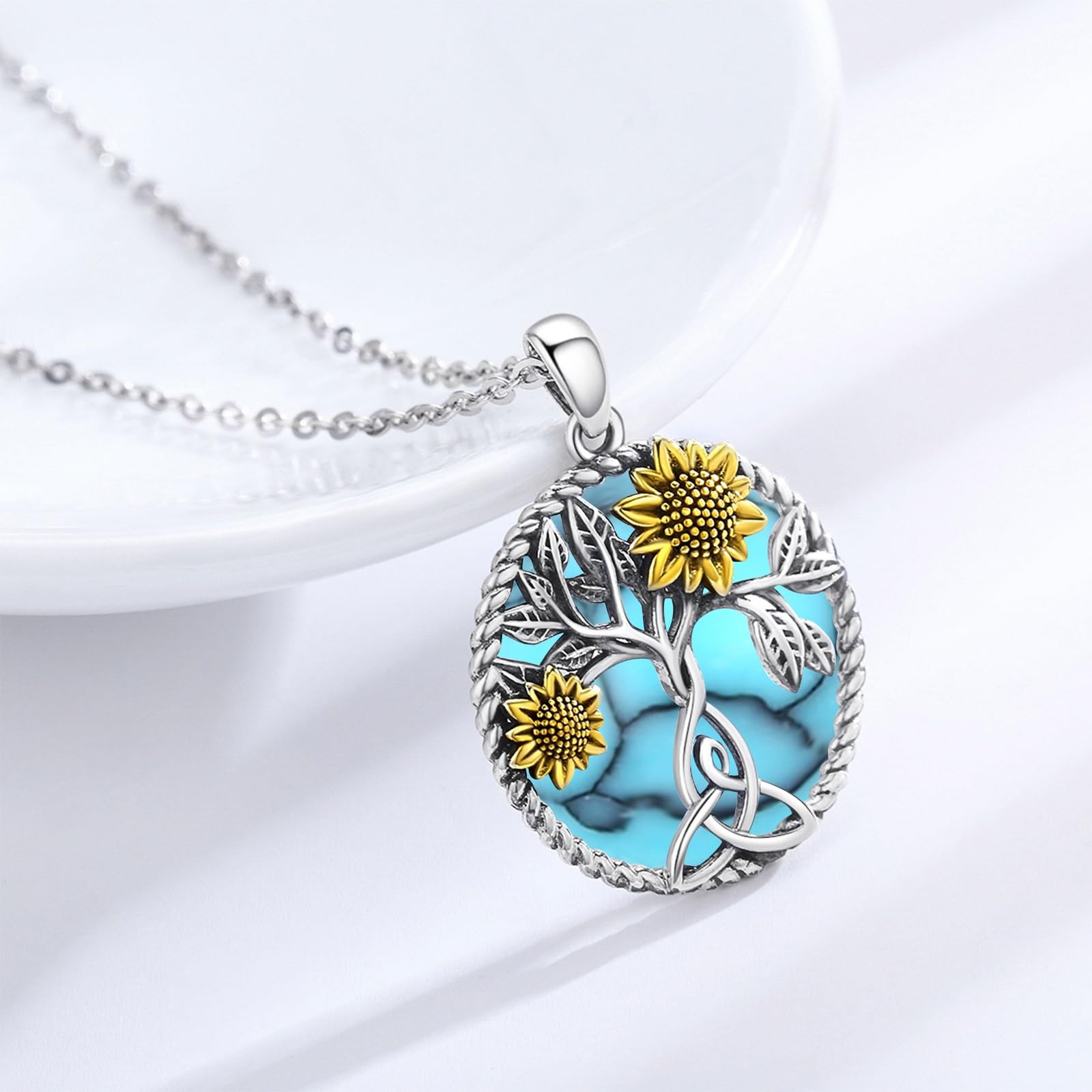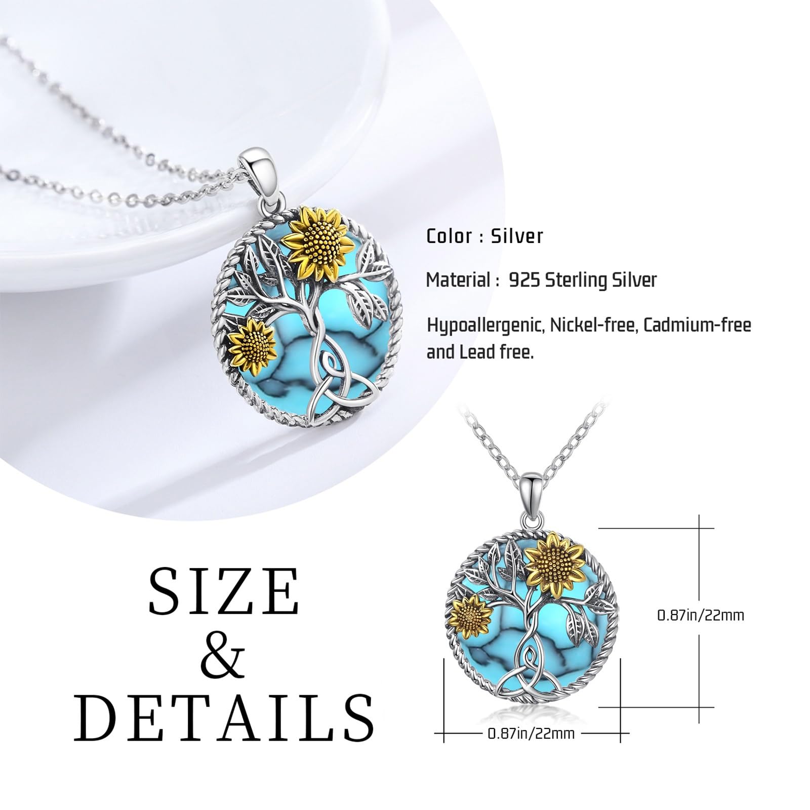 - 【Ausgezeichnetes Design】 Die Sonnenblume hat einen Torso in Form eines keltischen Knotens. Enthält endlose, kraftvolle und unendliche Vitalität, selbstlose und große Liebe. Der mit grünem Malachit eingelegte Baum des Lebens, einzigartig, elegant und charmant.