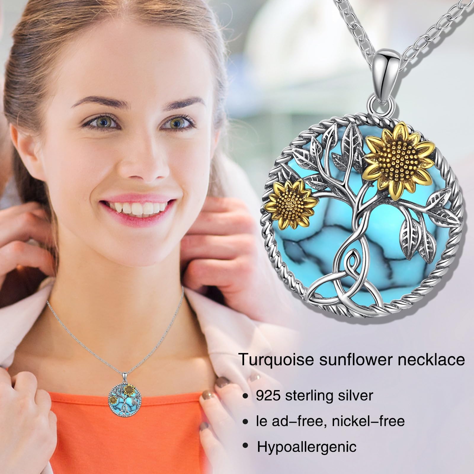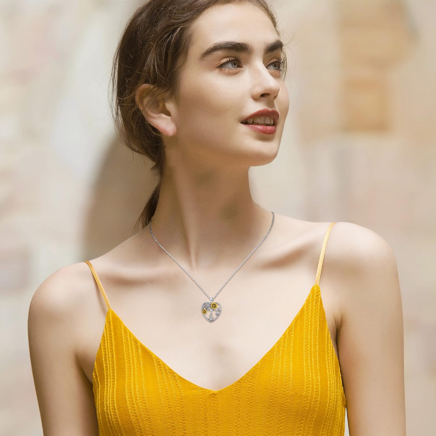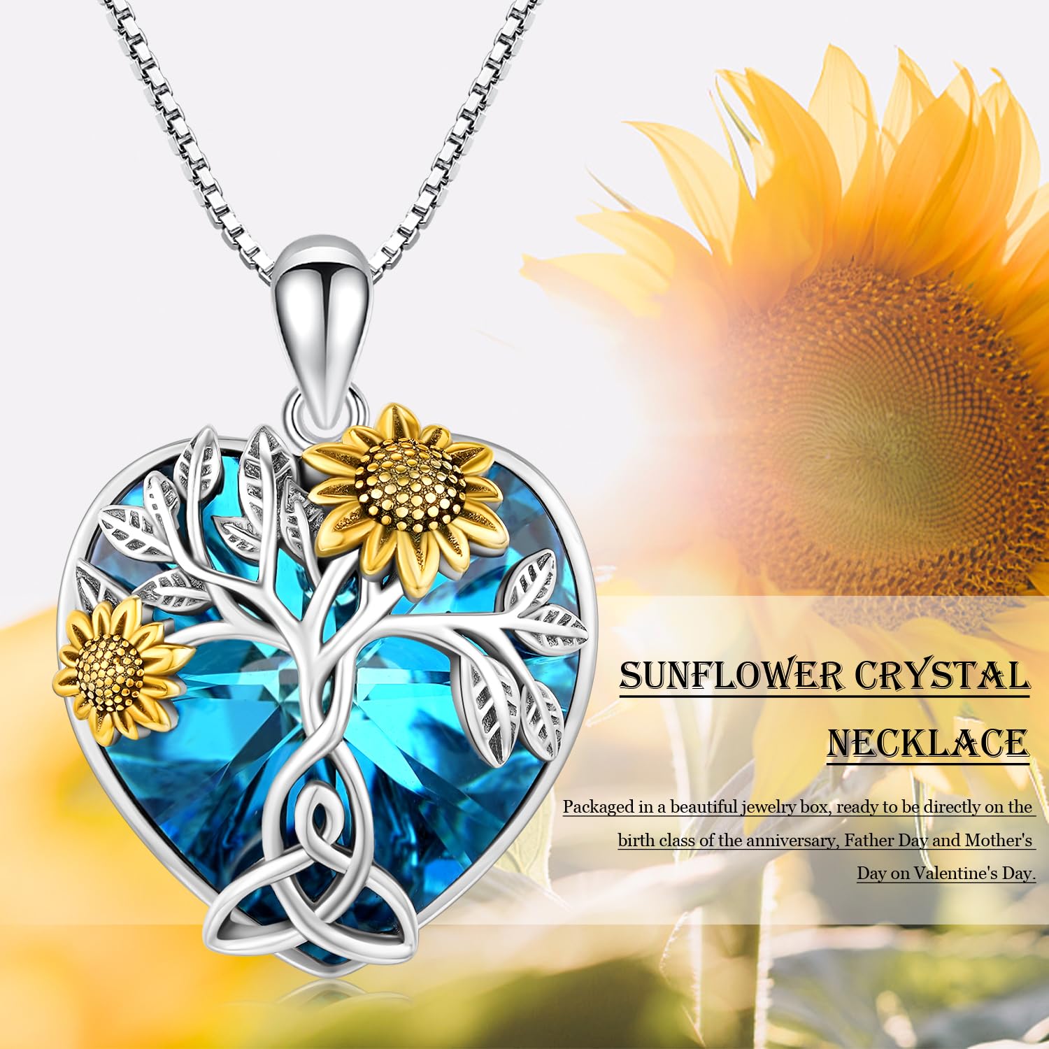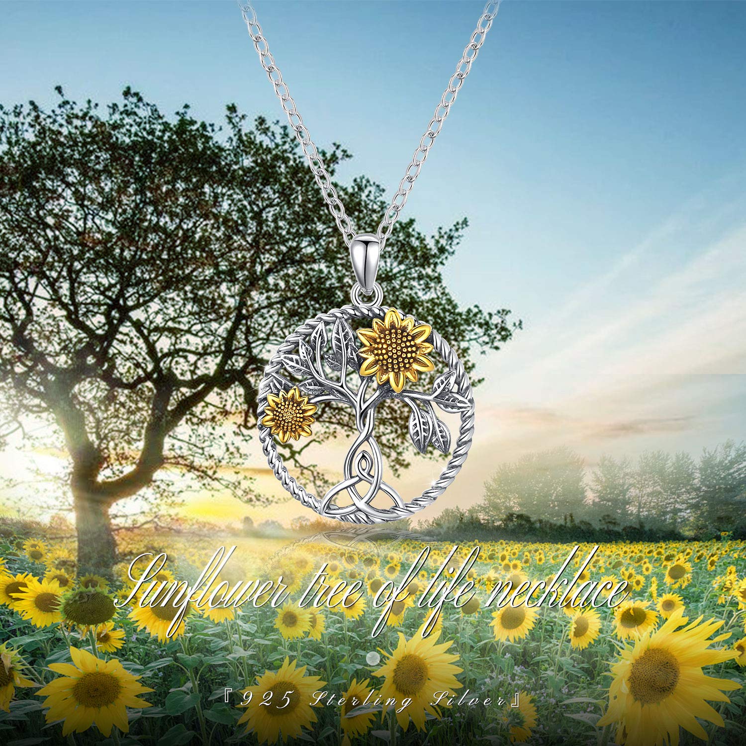Ederseensucht-Sonnenblumen-Halskette, 925er Sterlingsilber, Gänseblümchen/Rose/Mondstein, Sonnenblumen-Baum des Lebens-Anhänger-Halskette, Sonnenblumen-Schmuck, Geschenke für Frauen, Mädchen, Mütter