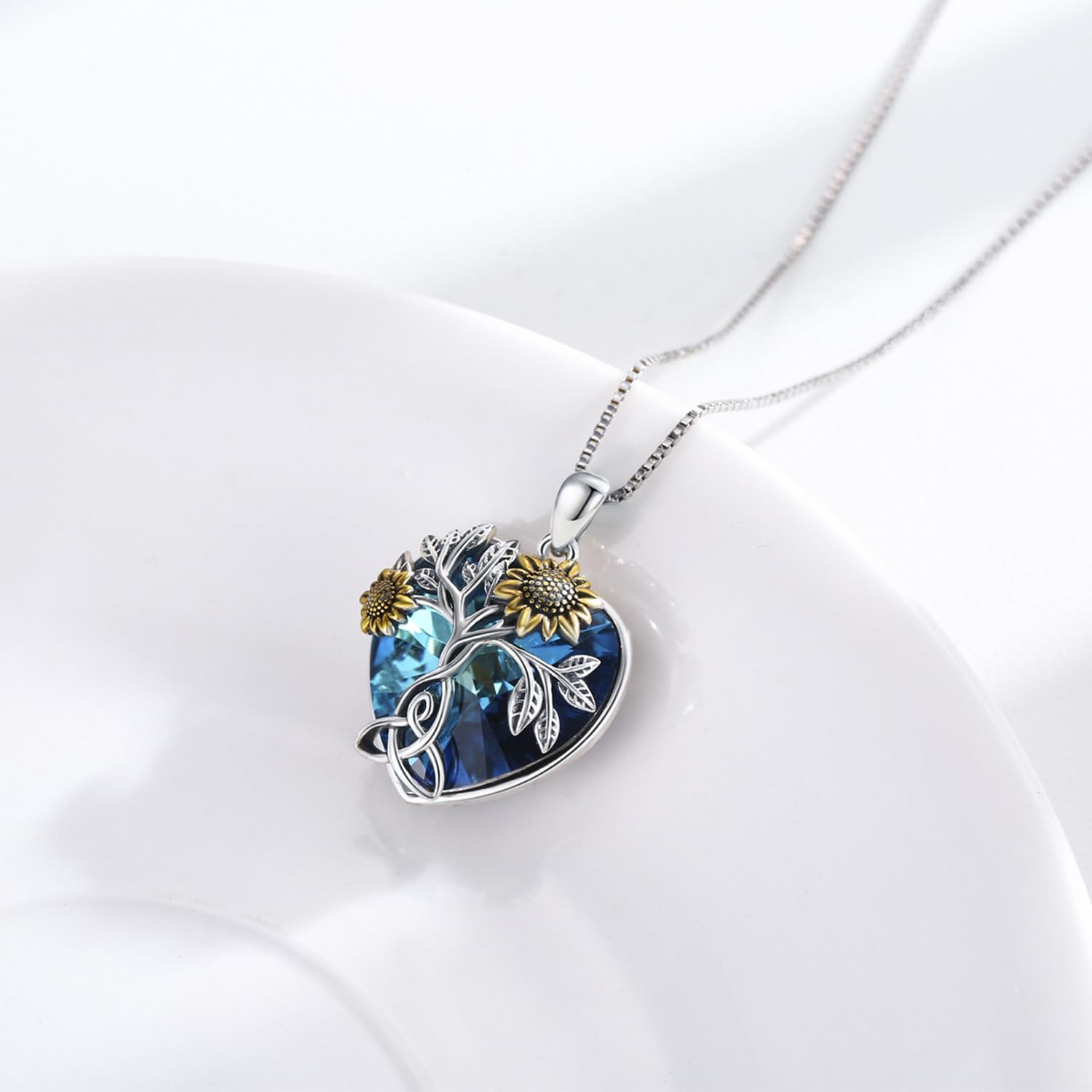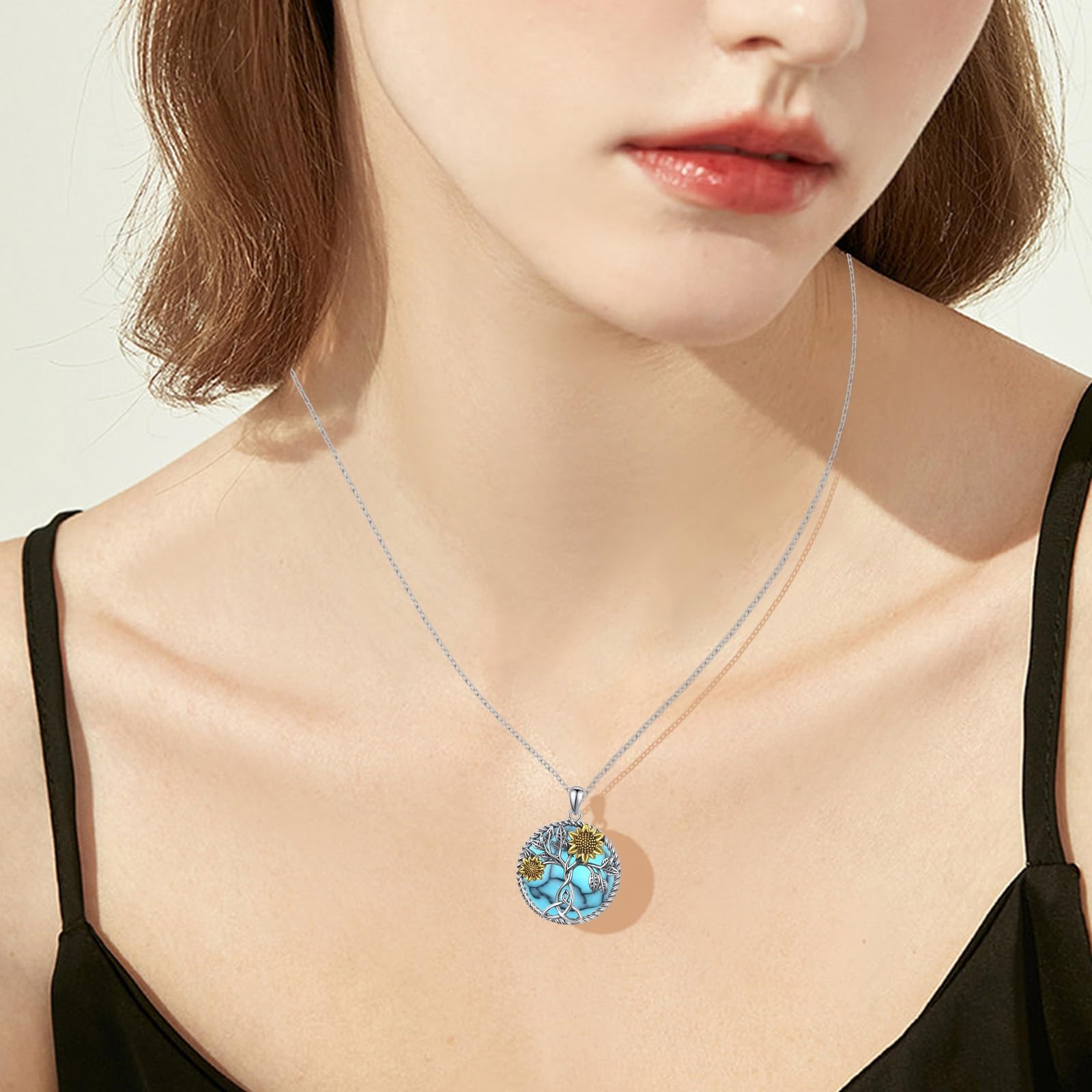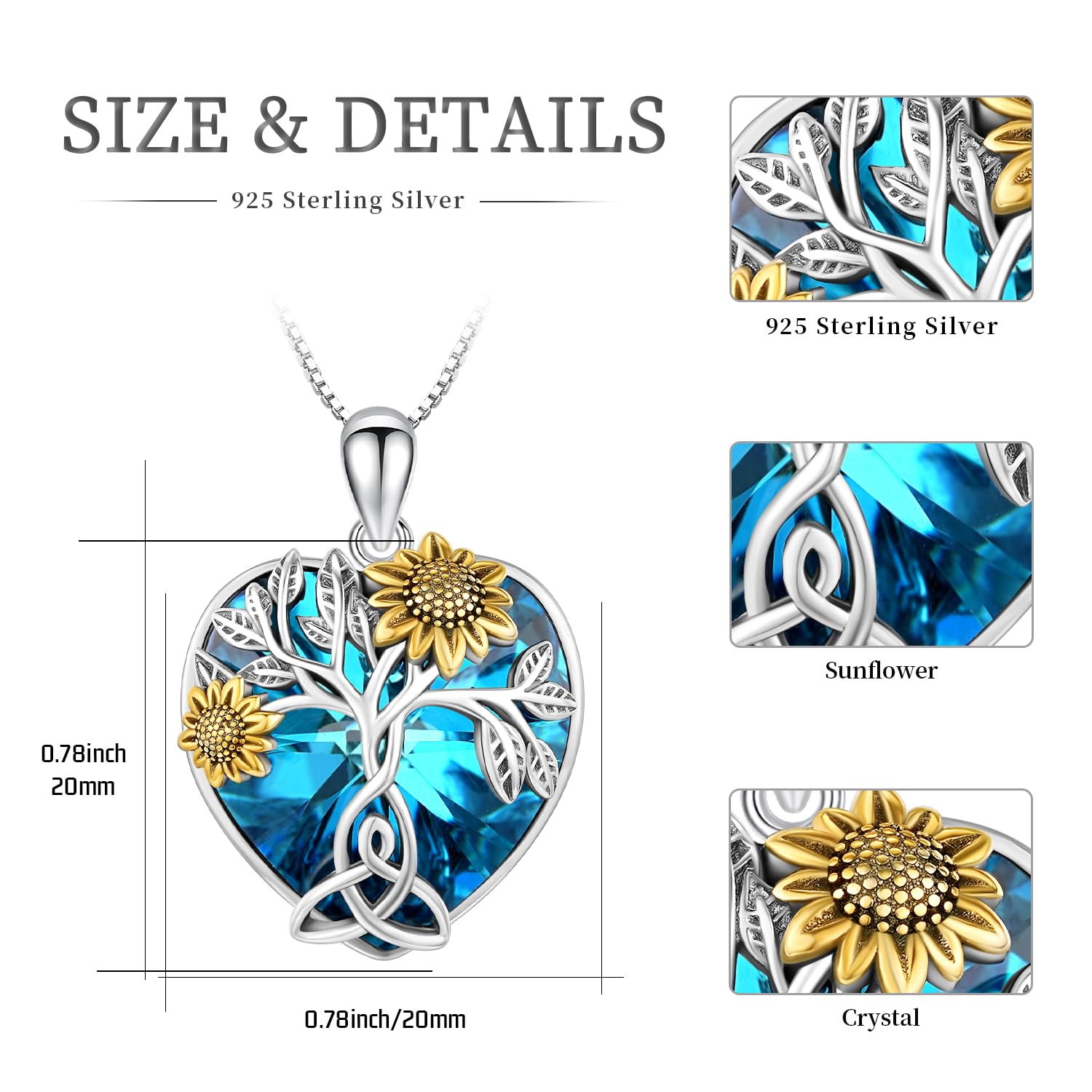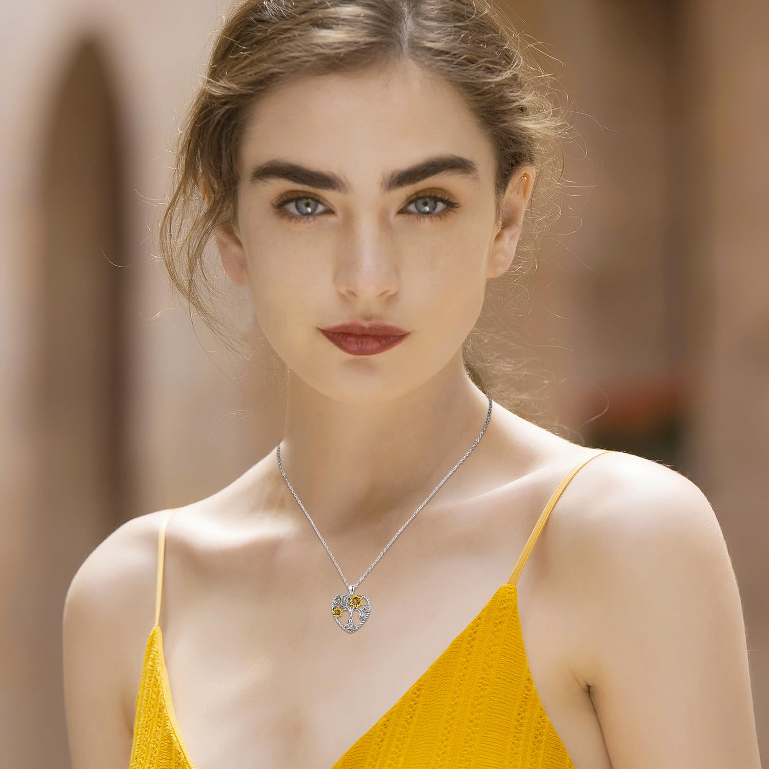 Ederseensucht-Sonnenblumen-Halskette, 925er Sterlingsilber, Gänseblümchen/Rose/Mondstein, Sonnenblumen-Baum des Lebens-Anhänger-Halskette, Sonnenblumen-Schmuck, Geschenke für Frauen, Mädchen, Mütter
