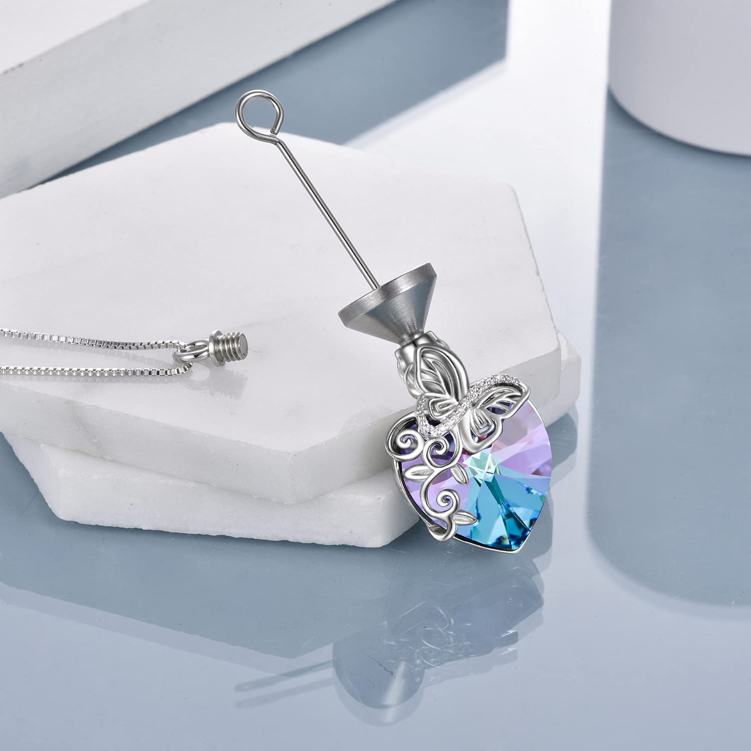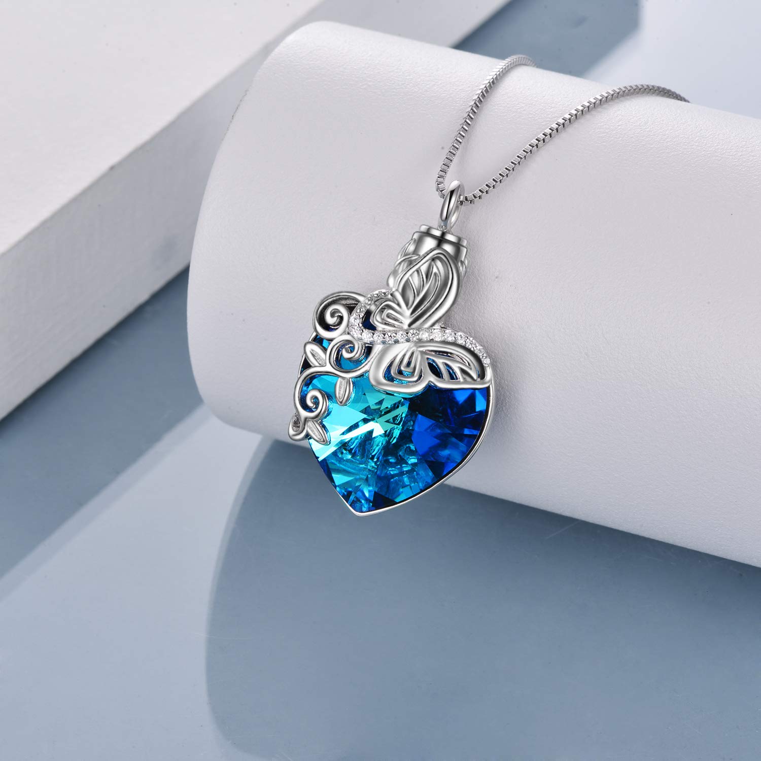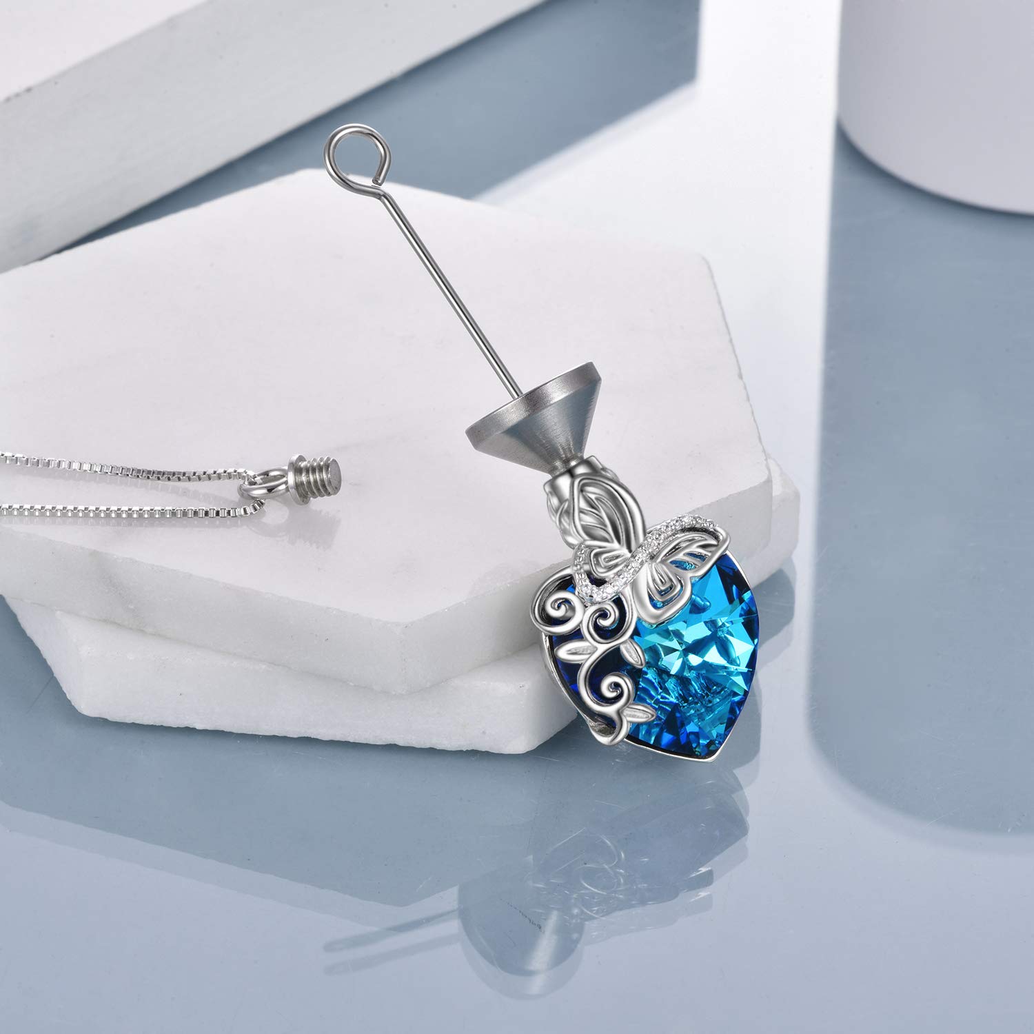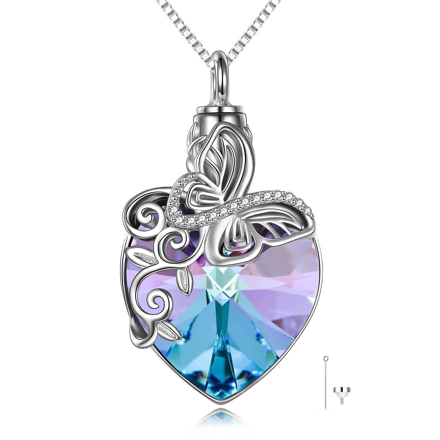Ederseensucht-TOUPOP Urnenkette für Ashes 925 Sterling Silber Baum des Lebens/Schmetterling Ascheschmuck Asche Urne Anhänger Cremation Halskette mit Herz Kristall Memory Schmuck für Damen Herren