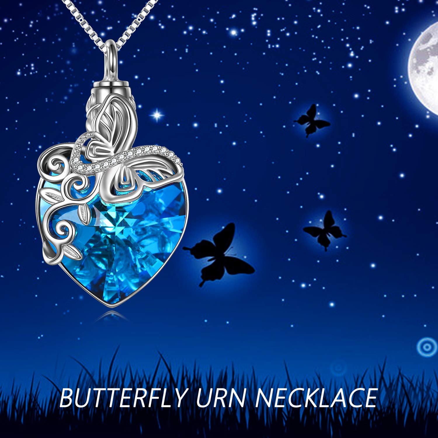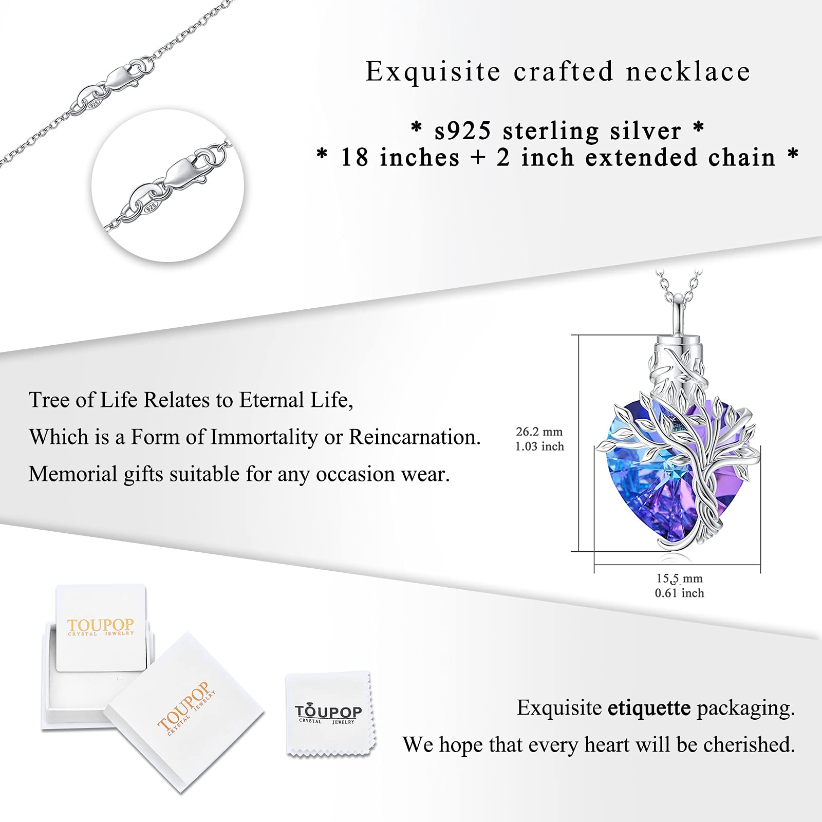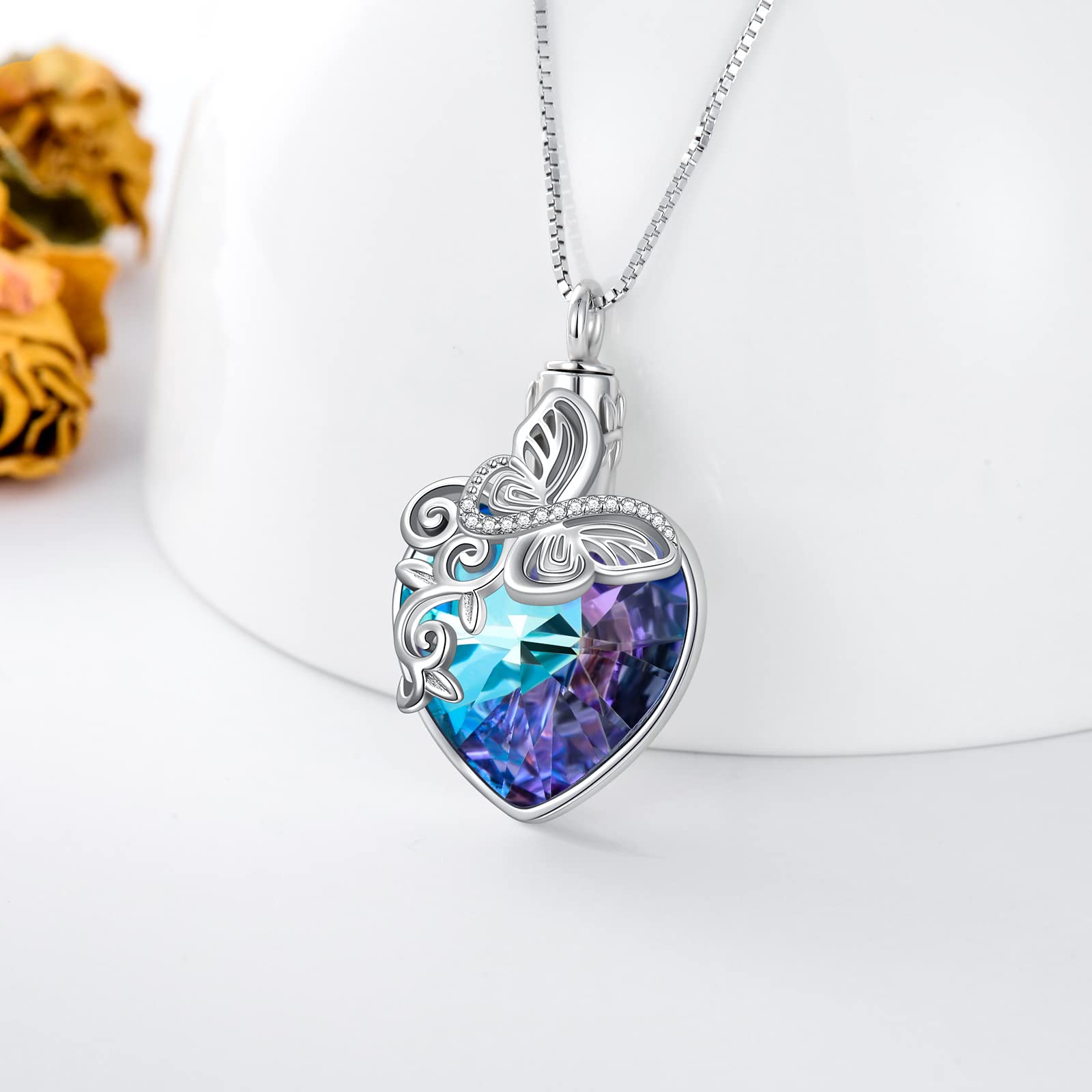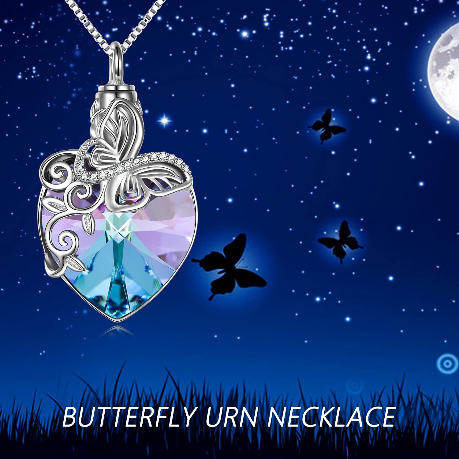 Ederseensucht-TOUPOP Urnenkette für Ashes 925 Sterling Silber Baum des Lebens/Schmetterling Ascheschmuck Asche Urne Anhänger Cremation Halskette mit Herz Kristall Memory Schmuck für Damen Herren