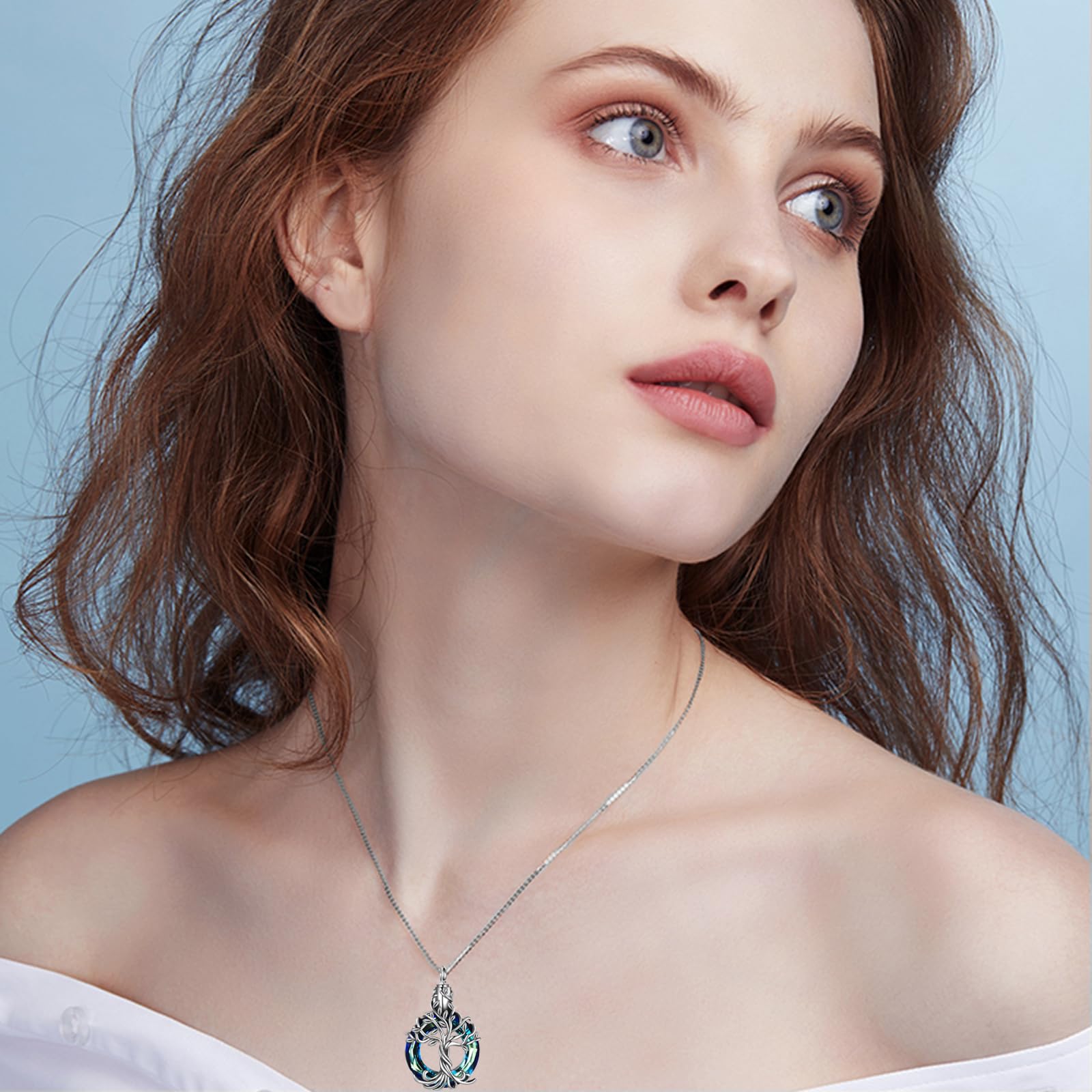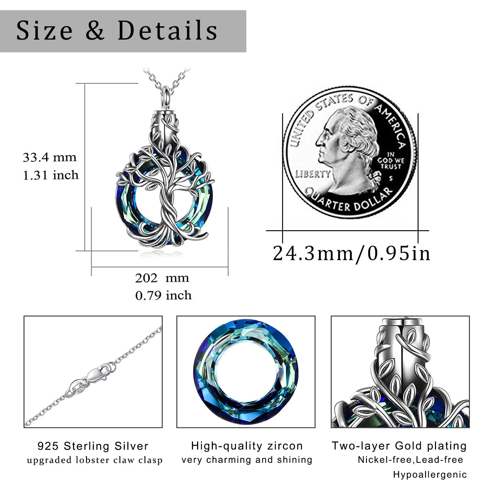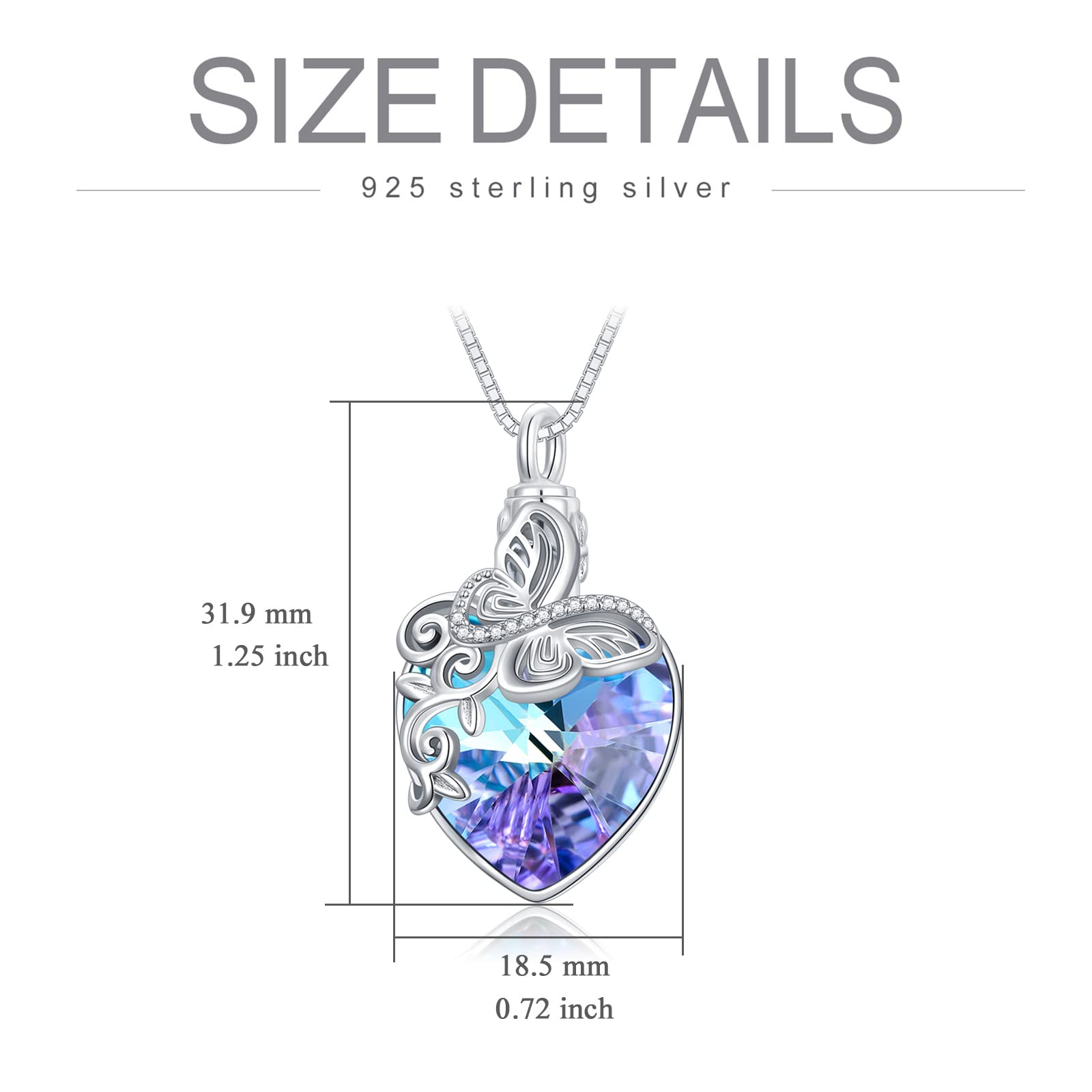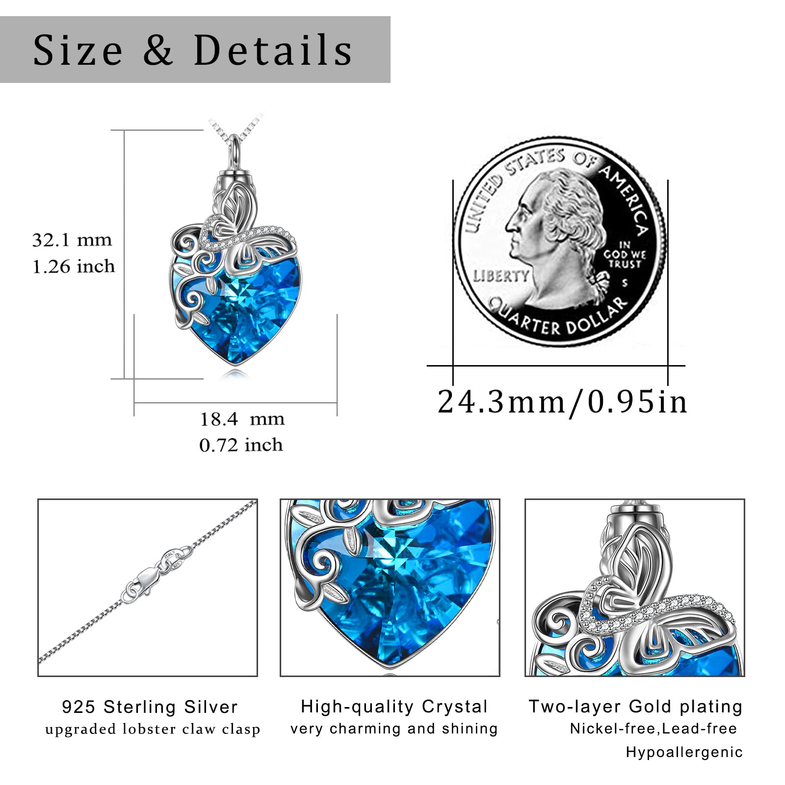 Ederseensucht-TOUPOP Urnenkette für Ashes 925 Sterling Silber Baum des Lebens/Schmetterling Ascheschmuck Asche Urne Anhänger Cremation Halskette mit Herz Kristall Memory Schmuck für Damen Herren